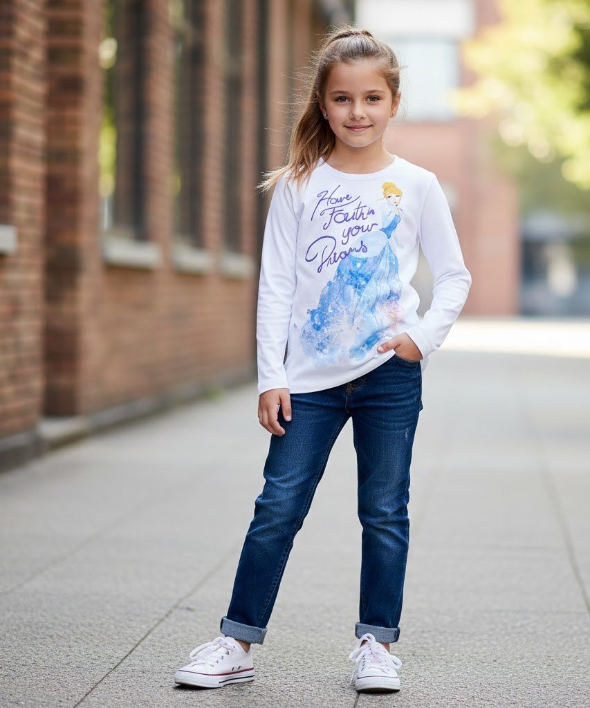 Make your little one’s day magical with the DisneyPrincess Cinderella Kids Long Sleeve T-Shirt!