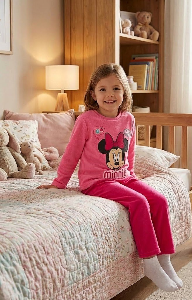 The DisneyMinnie Mouse girls fleece pyjamas by KidsTV are designed to deliver warmth, comfort, and classic Disney charm.