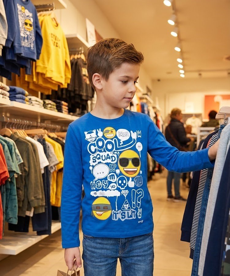 Inspired by the cheerful world of emojis, this long-sleeve T-shirt adds a touch of happiness to any boy’s wardrobe.