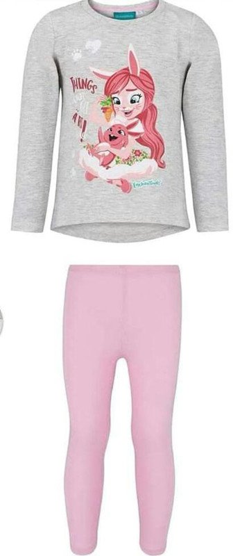 The Enchantimals pajama set features a relaxed fit with long sleeves and matching bottoms,