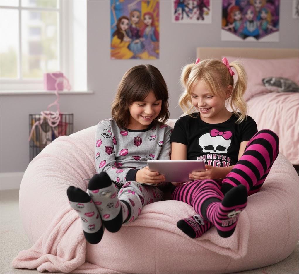 Moreover, these socks are crafted to keep little feet warm during chilly days, and they offer softness and durability suitable for daily indoor wear. In addition, Kids TV focuses on kid-friendly materials, ensuring that every pair feels gentle against the skin while providing reliable comfort. Furthermore, thanks to their vibrant colors and fun Monster High graphics, these socks instantly become a favorite choice for young fans who love character-themed apparel.